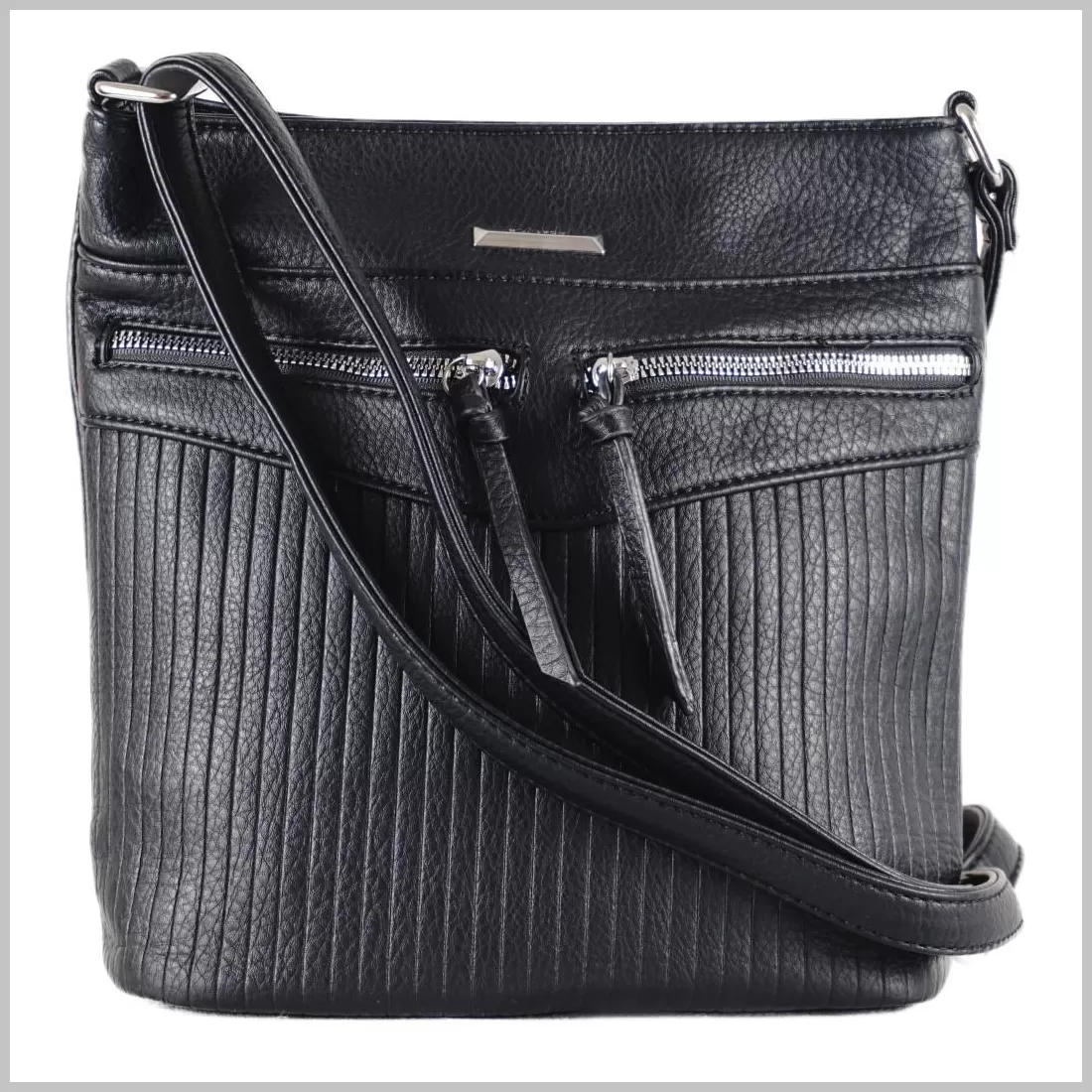 Silvia Rosa női válltáska elöl dupla zsebbel, műbőr, fekete